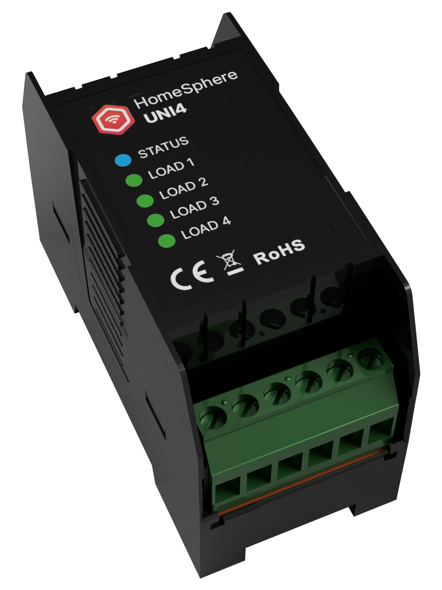 UNI4 is a powerful 4-contact switch. Each contact can operate both in pulse and bistable mode. The DIN-rail compatible body makes it possible to install UNI4 inside a junction box or a switchboard.